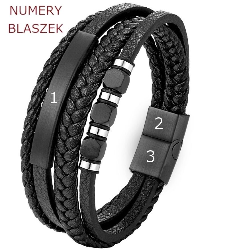 Bransoletka zatrzymująca wspomnienia z Twoim DOWOLNYM GRAWEREM. Idealny prezent dla TATY czy SYNA. Wysoka jakość wykonania i niesamowita elegancja. Wszystkie elementy wykonane w ''efekcie MATU''. Dodatkowo trzy matowe czarne kostki dodają bransoletce niepowtarzalnego wyglądu. Miękka skóra sprawia, że nosi się ją niezwykle komfortowo. Magnetyczne zapięcie zapobiega przypadkowemu odpięciu i zgubieniu bransoletki.