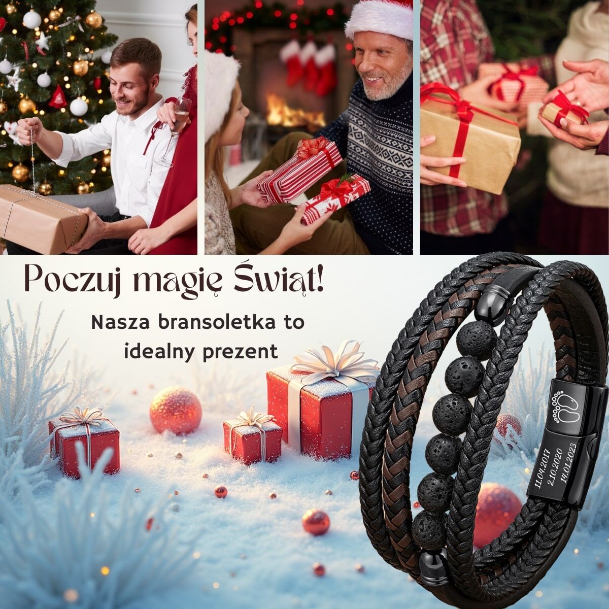 Bransoletka LAWA z grawerem skórzana dla OJCA PREZENT