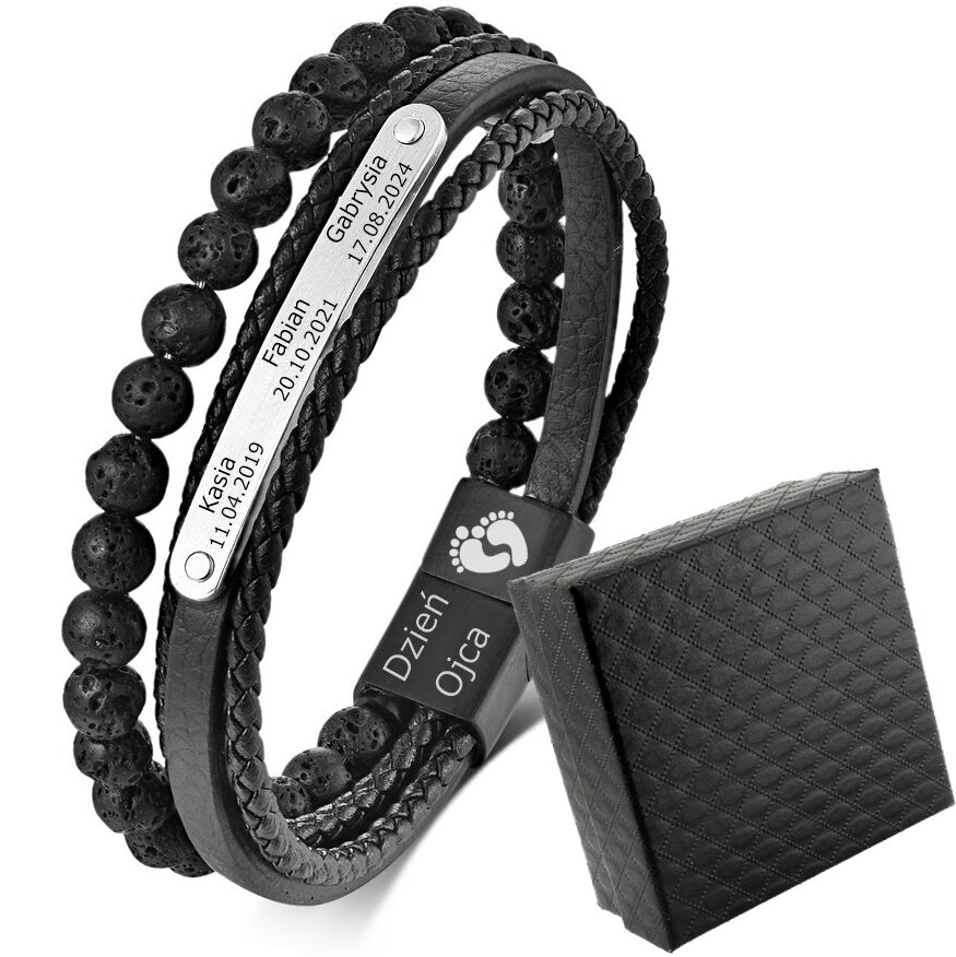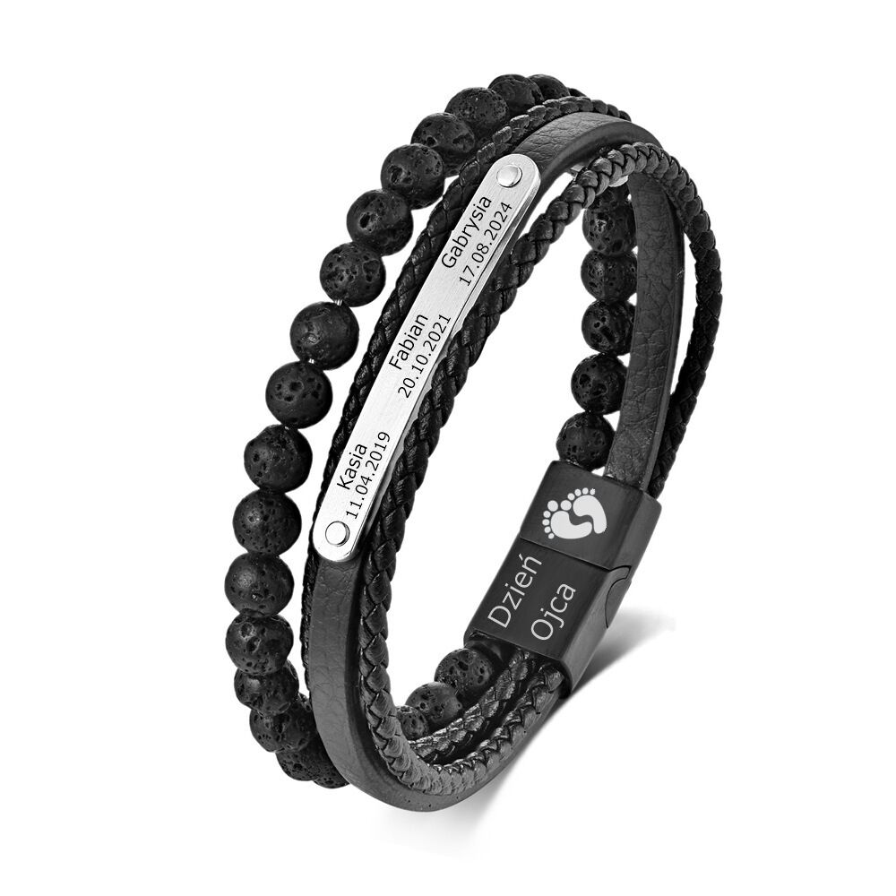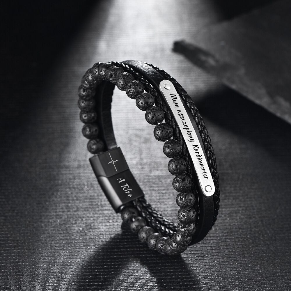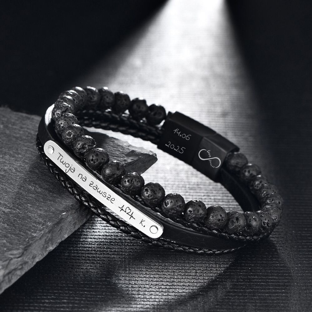Potęga natury i surowy minimalizm – Personalizowana bransoletka męska z lawy wulkanicznejSzukasz wyjątkowego personalizowanego prezentu dla niego, który emanuje męską energią i siłą? Ta bransoletka męska z kamieni wulkanicznych to propozycja dla tych, którzy cenią autentyczność i nieobrobione piękno natury. Lawa wulkaniczna to materiał wykuty w ekstremalnych temperaturach, a jej porowata, matowa powierzchnia jest symbolem determinacji i zdolności do odrodzenia. To biżuteria o unikalnej teksturze, która przyciąga wzrok i intryguje swoim pierwotnym charakterem. Dzięki opcji bransoletki z grawerem, ten surowy dodatek zmieni się w Twój osobisty manifest. Twoją unikalną dedykację wykonamy z najwyższą starannością, całkowicie za darmo!