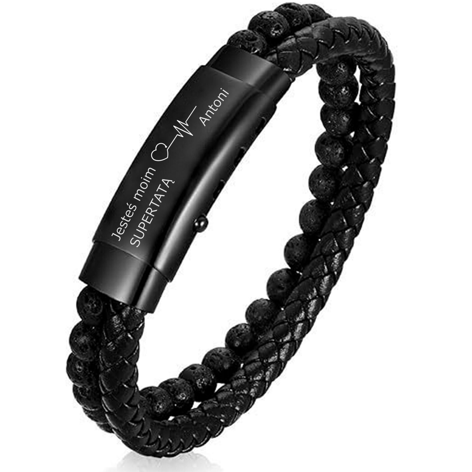 Szukasz wyjątkowego personalizowanego prezentu dla niego, który emanuje męską energią i siłą? Ta bransoletka męska z kamieni wulkanicznych to propozycja dla tych, którzy cenią autentyczność i nieobrobione piękno natury. Lawa wulkaniczna to materiał wykuty w ekstremalnych temperaturach, a jej porowata, matowa powierzchnia jest symbolem determinacji i zdolności do odrodzenia. To biżuteria o unikalnej teksturze, która przyciąga wzrok i intryguje swoim pierwotnym charakterem. Dzięki opcji bransoletki z grawerem, ten surowy dodatek zmieni się w Twój osobisty manifest. Twoją unikalną dedykację wykonamy z najwyższą starannością, całkowicie za darmo!