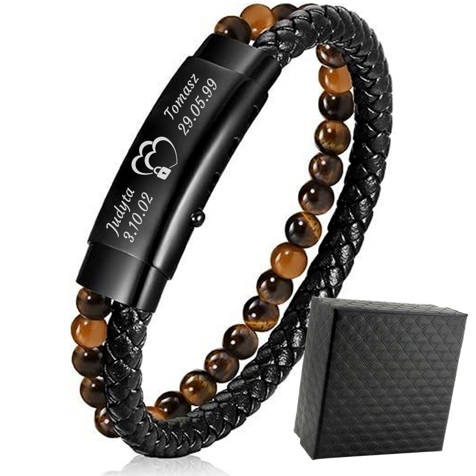Twoja osobista bransoletka męska – personalizacja GRATIS!Odkryj doskonałe zestawienie natury i technologii. Ta bransoletka z kamieni półszlachetnych wyróżnia się nie tylko głębią tygrysiego oka, ale również nowoczesnym, czarnym regulowanym zapięciem. Jest ono niezwykle intuicyjne w obsłudze i bezpieczne, dzięki czemu bransoletka idealnie trzyma się nadgarstka w każdej sytuacji. To Twój prywatny akcent, który podkreśli każdą stylizację. Na czarnym elemencie wykonamy dla Ciebie dowolny grawer bez żadnych dopłat. Wybierz słowo, które Cię definiuje, lub datę, o której chcesz pamiętać.Jak zamówić grawer?Wystarczy kliknąć w przycisk "PERSONALIZUJ TERAZ", a prosty kreator przeprowadzi Cię przez personalizację. Więcej o grawerowaniu w zakładce "GRAWER".
