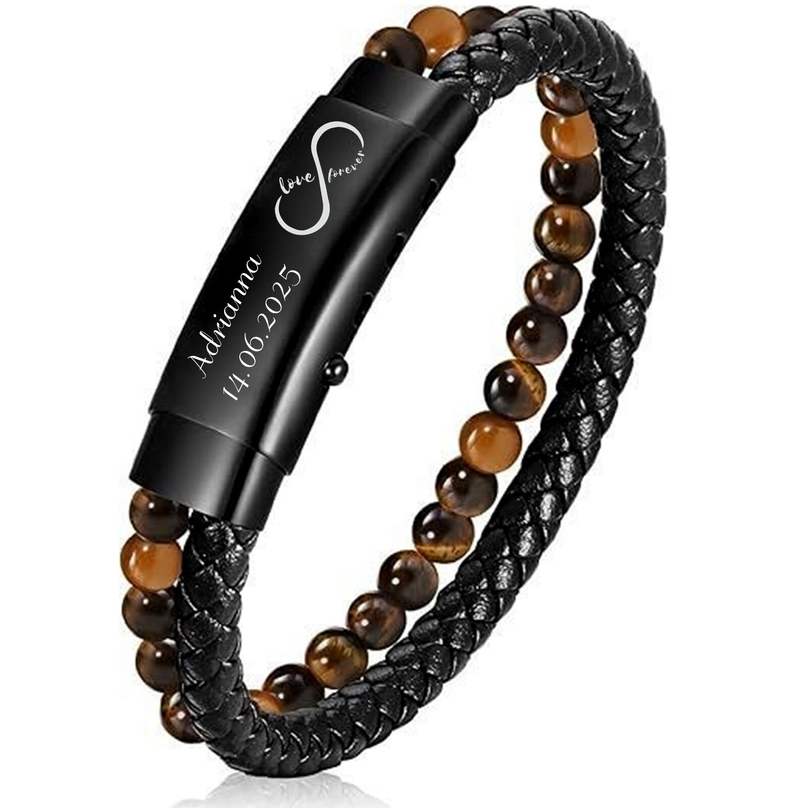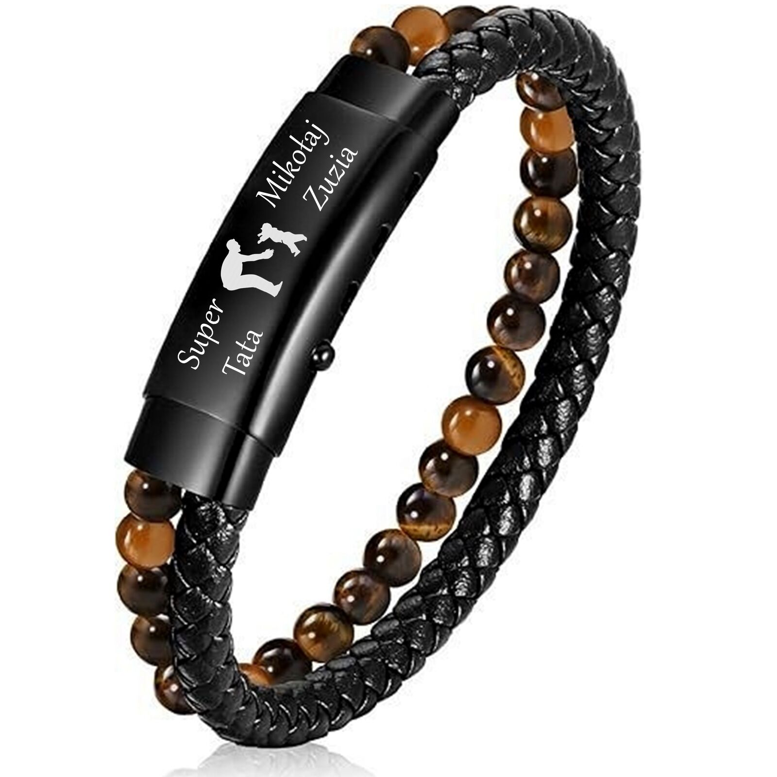 Siła i determinacja w unikalnym oku tygrysa – Personalizowana bransoletka męska z naturalnymi kamieniami.Szukasz wyjątkowego personalizowanego prezentu dla niego, który połączy styl z głęboką symboliką? Ta bransoletka męska z tygrysim okiem to wybór dla mężczyzn ceniących charakter i klasę. Tygrysie oko to minerał odwagi, znany ze swoich hipnotyzujących, brązowych pasm, które mienią się przy każdym ruchu ręki. Kamień ten od wieków uznawany jest za talizman chroniący właściciela i dodający mu pewności w dążeniu do celu. W połączeniu z bransoletką z grawerem stworzysz coś więcej niż ozdobę – stworzysz osobisty symbol zwycięstwa. Twoją dedykację naniesiemy z najwyższą starannością, całkowicie za darmo!