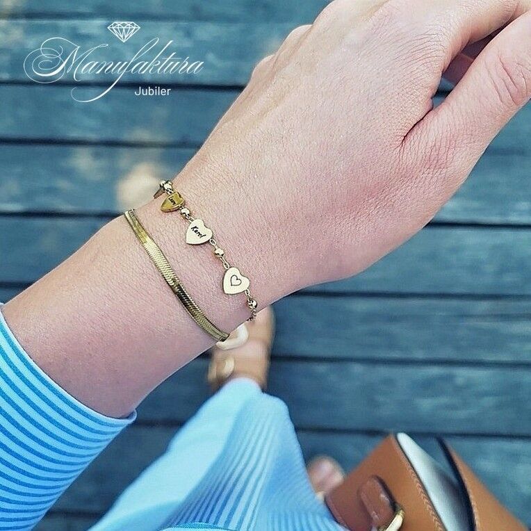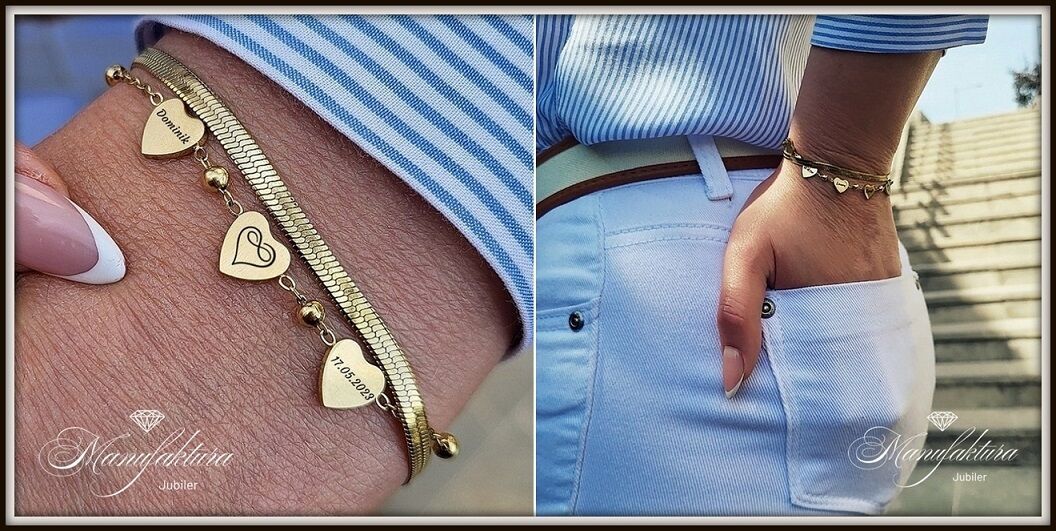 Dlaczego zakochasz się w tej bransoletce? Ten model to prawdziwy must have biżuteryjnych upominków, który podbija serca naszych Klientek. Bransoletka posiada możliwość wyboru ilości serc. Dzięki temu możesz kreować jej wygląd właśnie poprzez wybór ilości serc i dodawać swoje napisy, które zawsze wykonujemy gratis! Więcej o grawerunkach w zakładce obok ''GRAWER''. Bransoletka idealnie nadaje się na wyznanie miłości, poprzez grawer np. ważne daty, imiona ukochanych osób czy po prostu, tajemnice zapisaną ''szyfrem'', znaną tylko ich właścicielkom. Oryginalnie ozdobi nadgarstek każdej Pani.