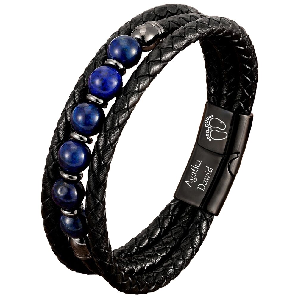 Bransoletka skórzana KAMIENIE PÓŁSZLACHETNE NIEBIESKIE z grawerem