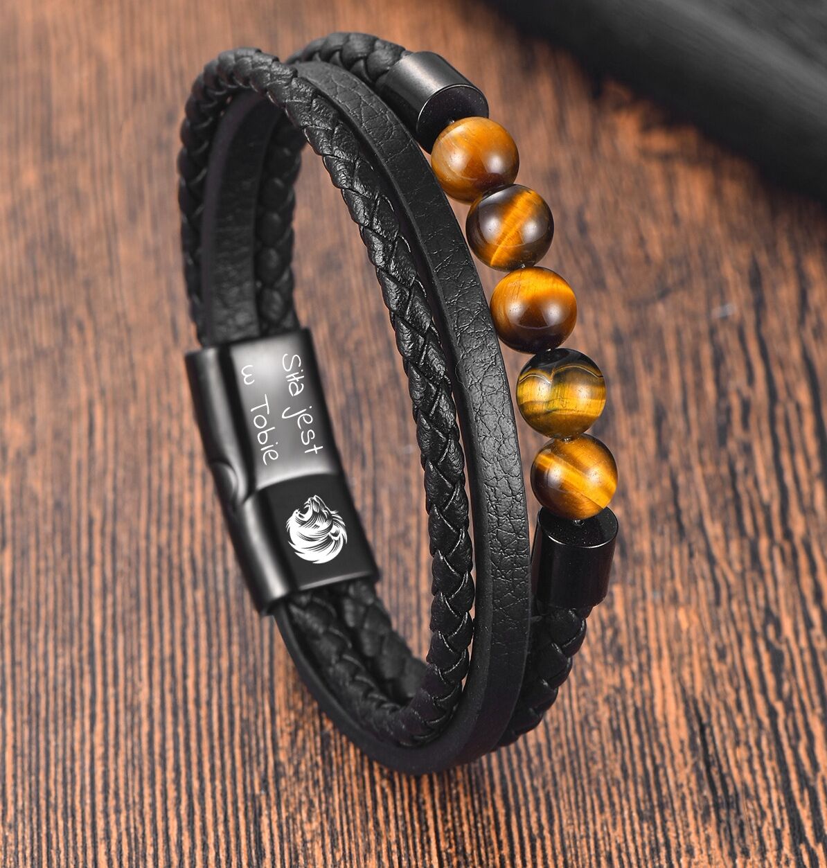 Bransoletka skórzana TYGRYSIE OKO z grawerem