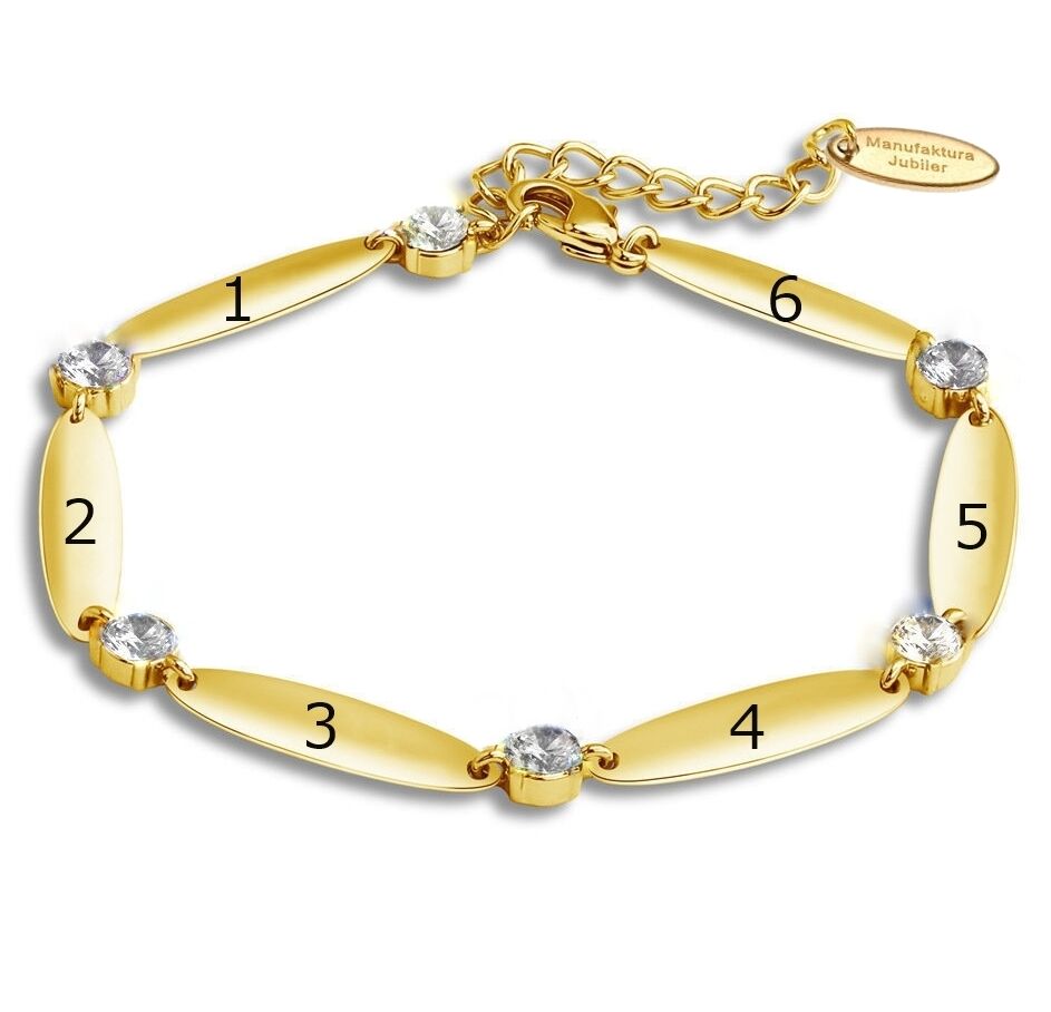 Model ten posiada aż sześć blaszek, okraszonych delikatnymi cyrkoniami. Idealnie nadaje się na wyznanie miłości, poprzez grawer np. ważne daty, imiona ukochanych osób czy po prostu, tajemnice zapisaną ''szyfrem'', znaną tylko ich właścicielkom. Dodatkowo po personalizacji bransoletki, będzie możliwość dodania do koszyka również naszego kultowego RETRO liścika w promocyjnej cenie. A na nim będziesz mógł umieścić własnoręcznie dedykacje czy rysunki. Dzięki temu stworzysz niezapomniany i nietuzinkowy PREZTN dla każdej Kobiety na każdą okazję.