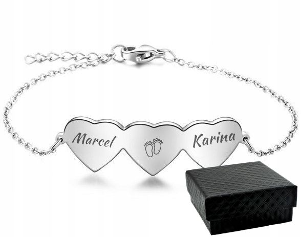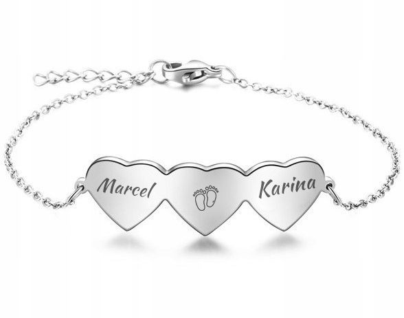 Oryginalna bransoletka z blaszką w kształcie trzech serc gdzie znajduje się miejsce na Twój wybrany grawer. Delikatny splot łańcuszka, sprawia, że bransoletka prezentuje się subtelnie i niepowtarzalnie na każdym nadgarstku. W naszym asortymencie posiadamy również ten sam model bransoletek z różną ilością serc oraz w kolorach złota i srebra.