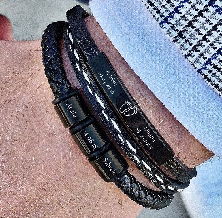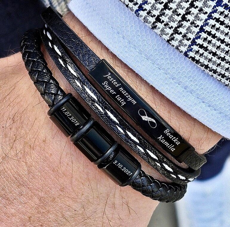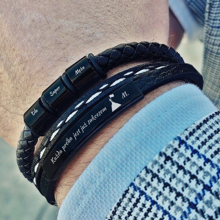 ELEGANCKA bransoletka męska BIAŁE PRZESZYCIA z grawerem