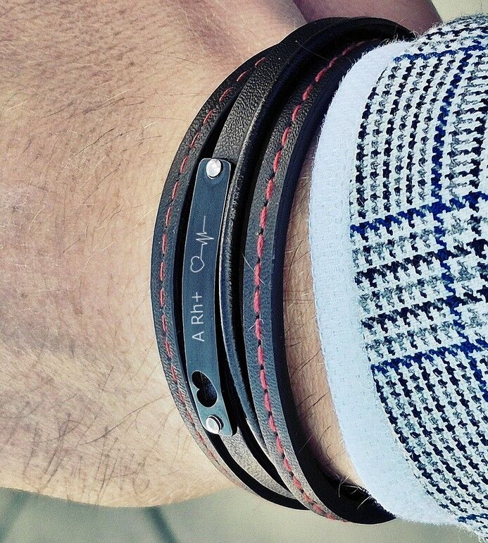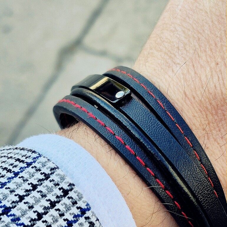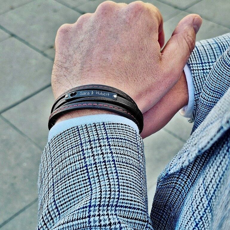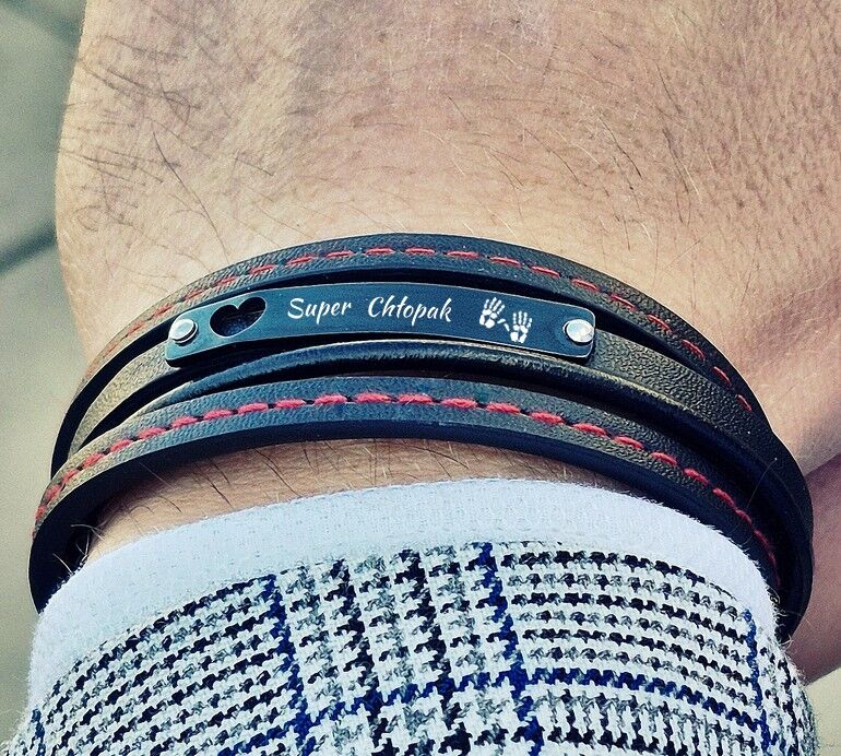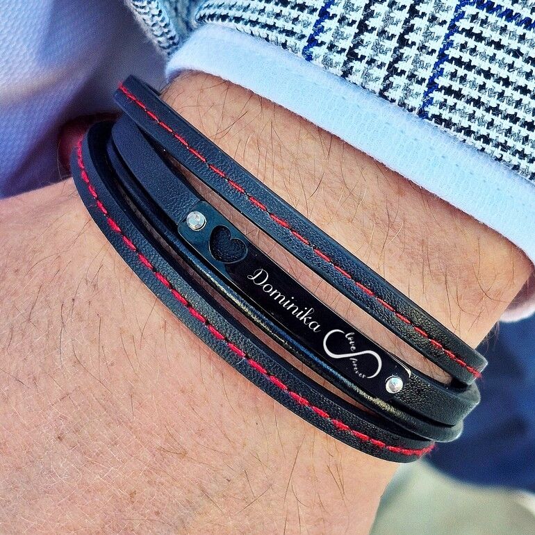 ELEGANCKA bransoletka męska CZERWONE PRZESZYCIA z grawerem