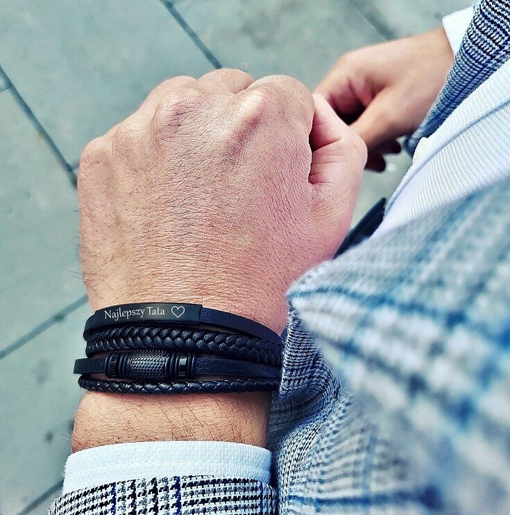 ELEGANCKA bransoletka skórzana grawer dla OJCA SYNA prezent