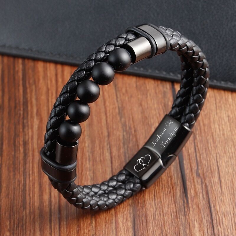 ELEGANCKA bransoletka męska KORALIKI z grawerem