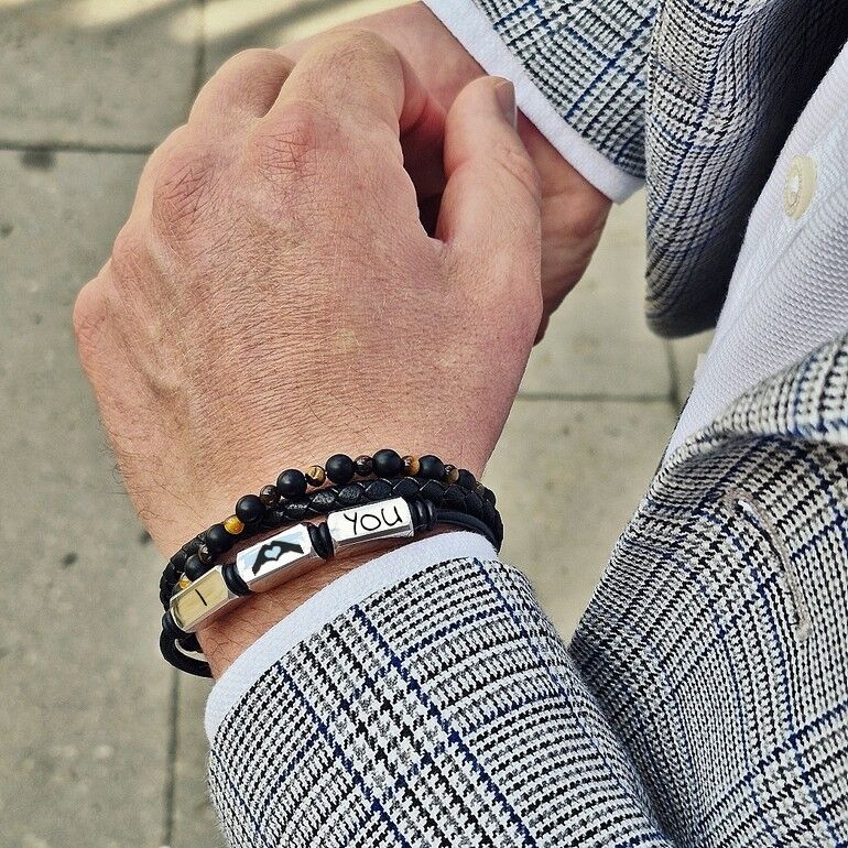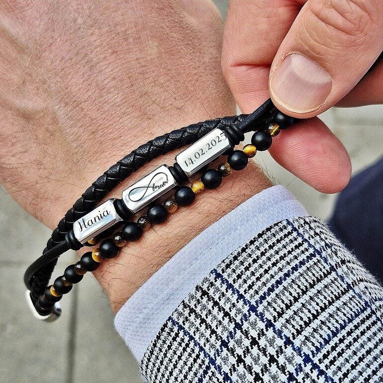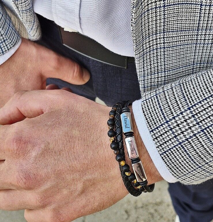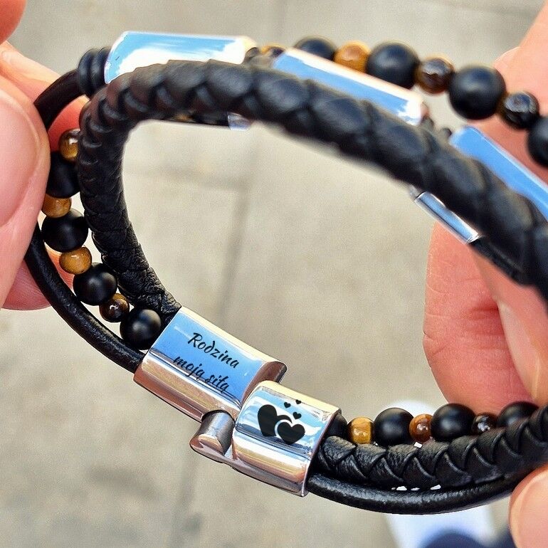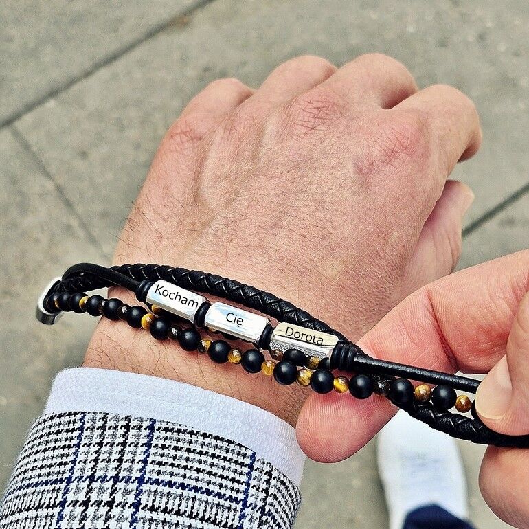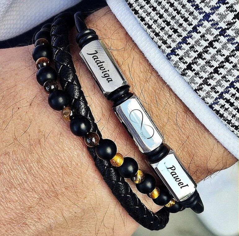 ELEGANCKA bransoletka męska KORALIKI z grawerem