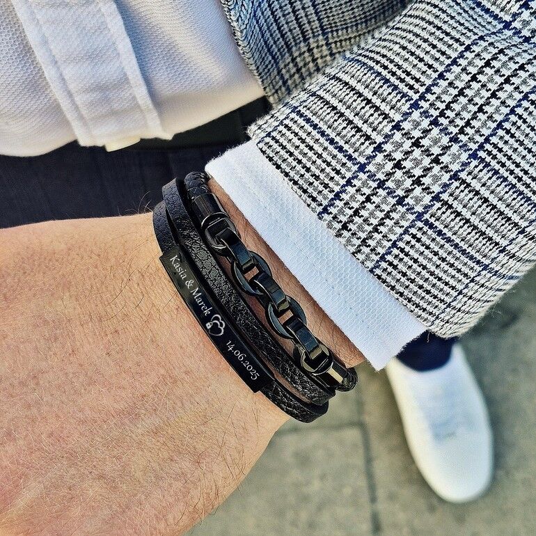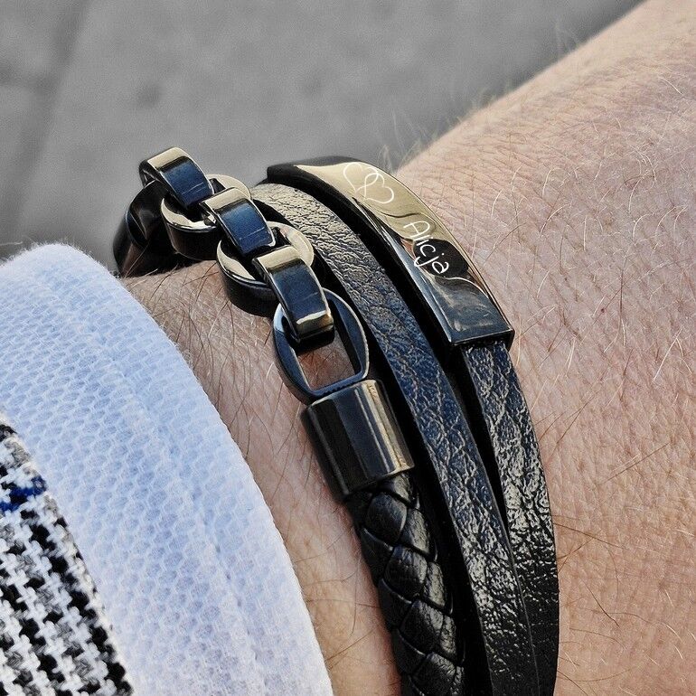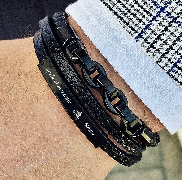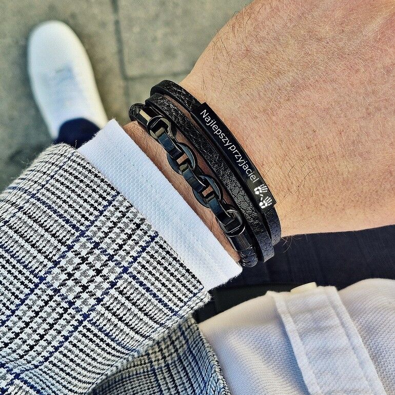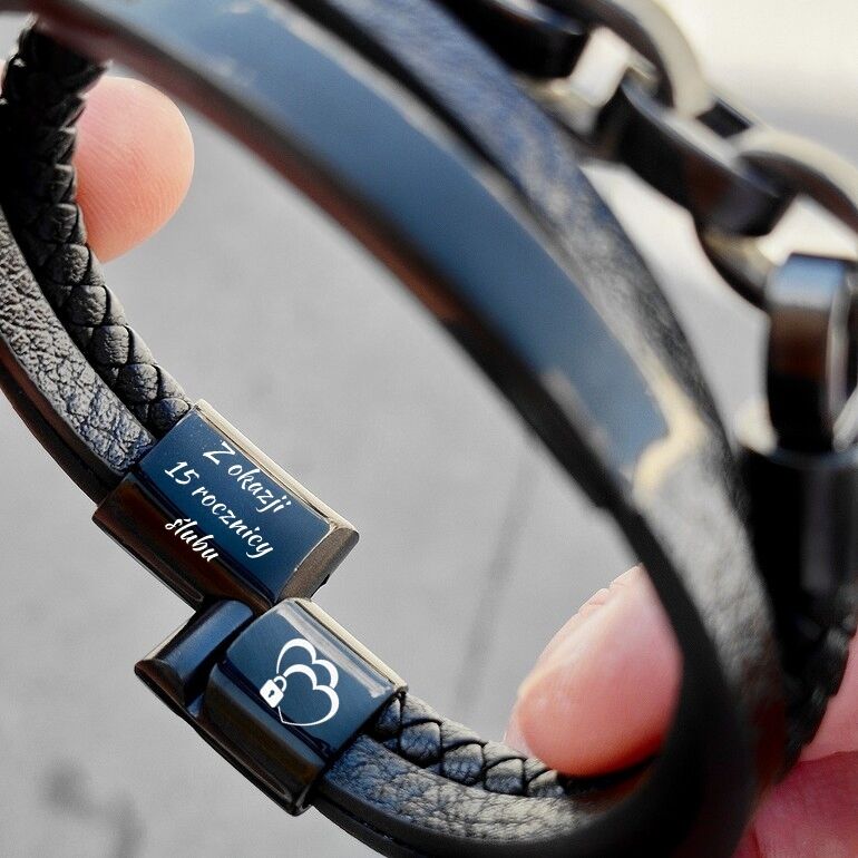 ELEGANCKA bransoletka skórzana ŁAŃCUCH z grawerem