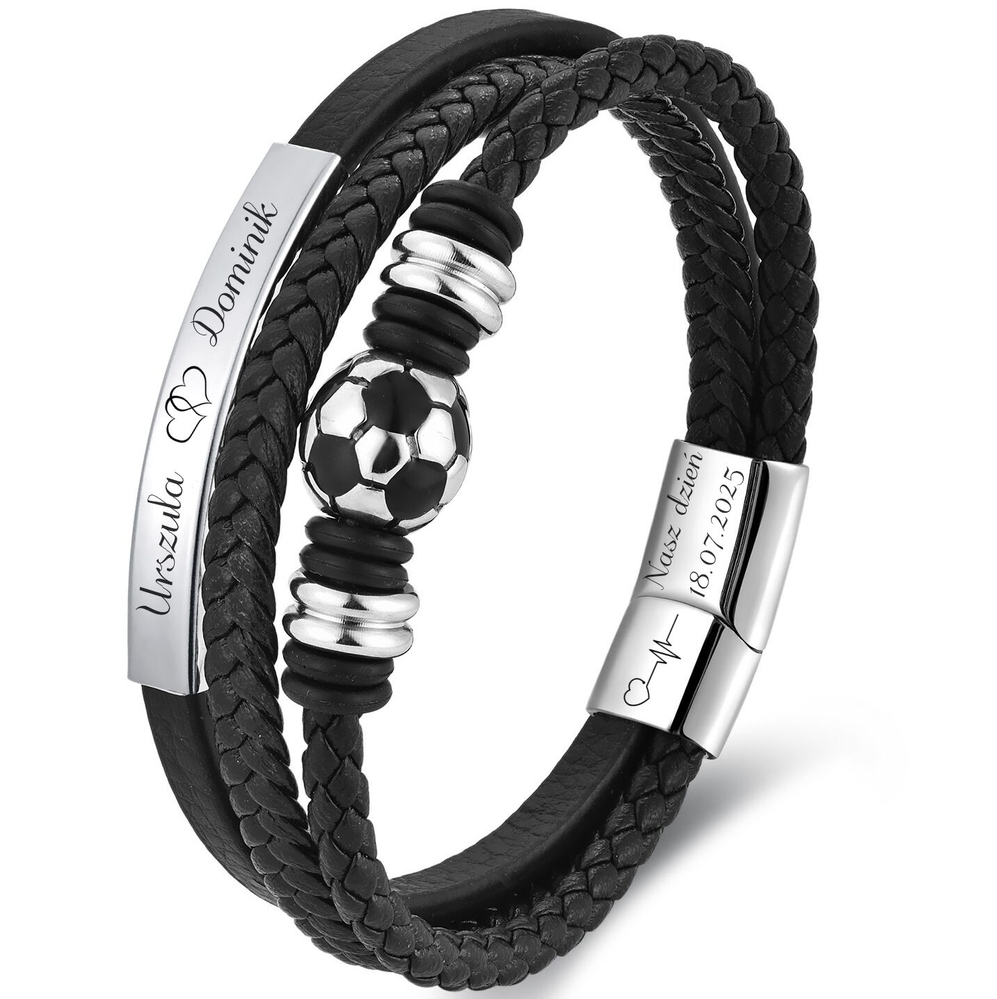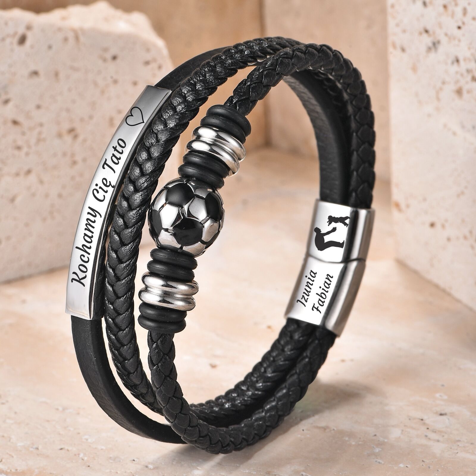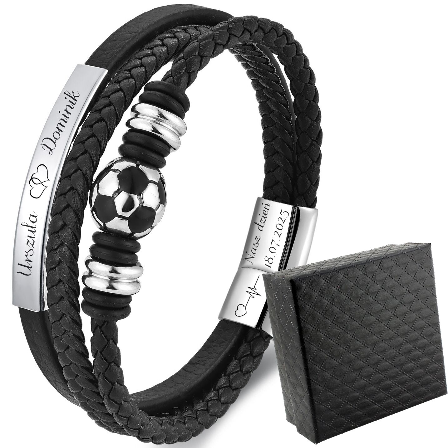 ELEGANCKA bransoletka skórzana PIŁKA NOŻNA z grawerem