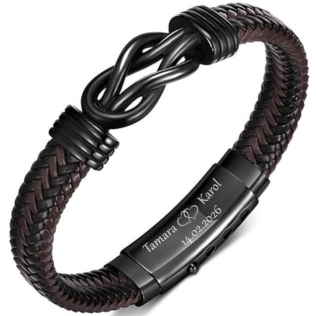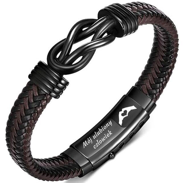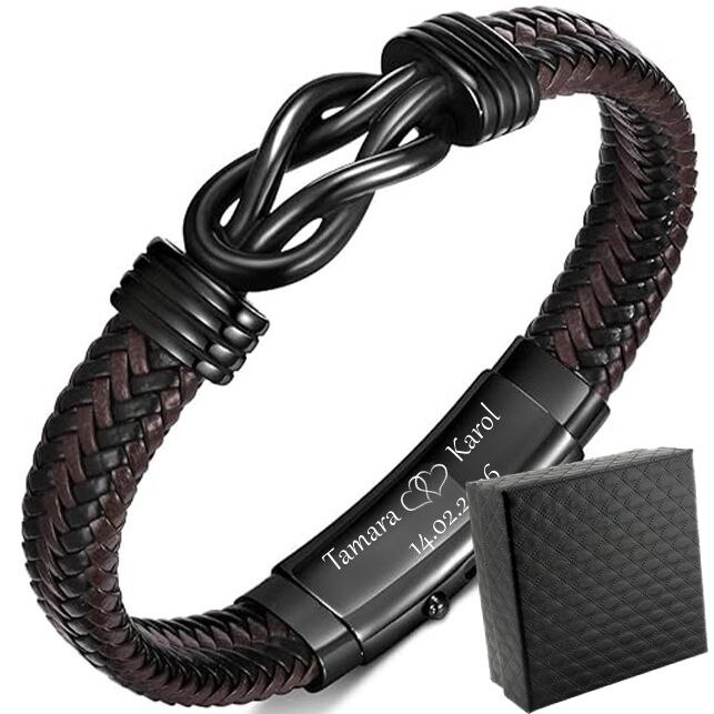 ELEGANCKA bransoletka skórzana WĘZEŁ z grawerem regulowana