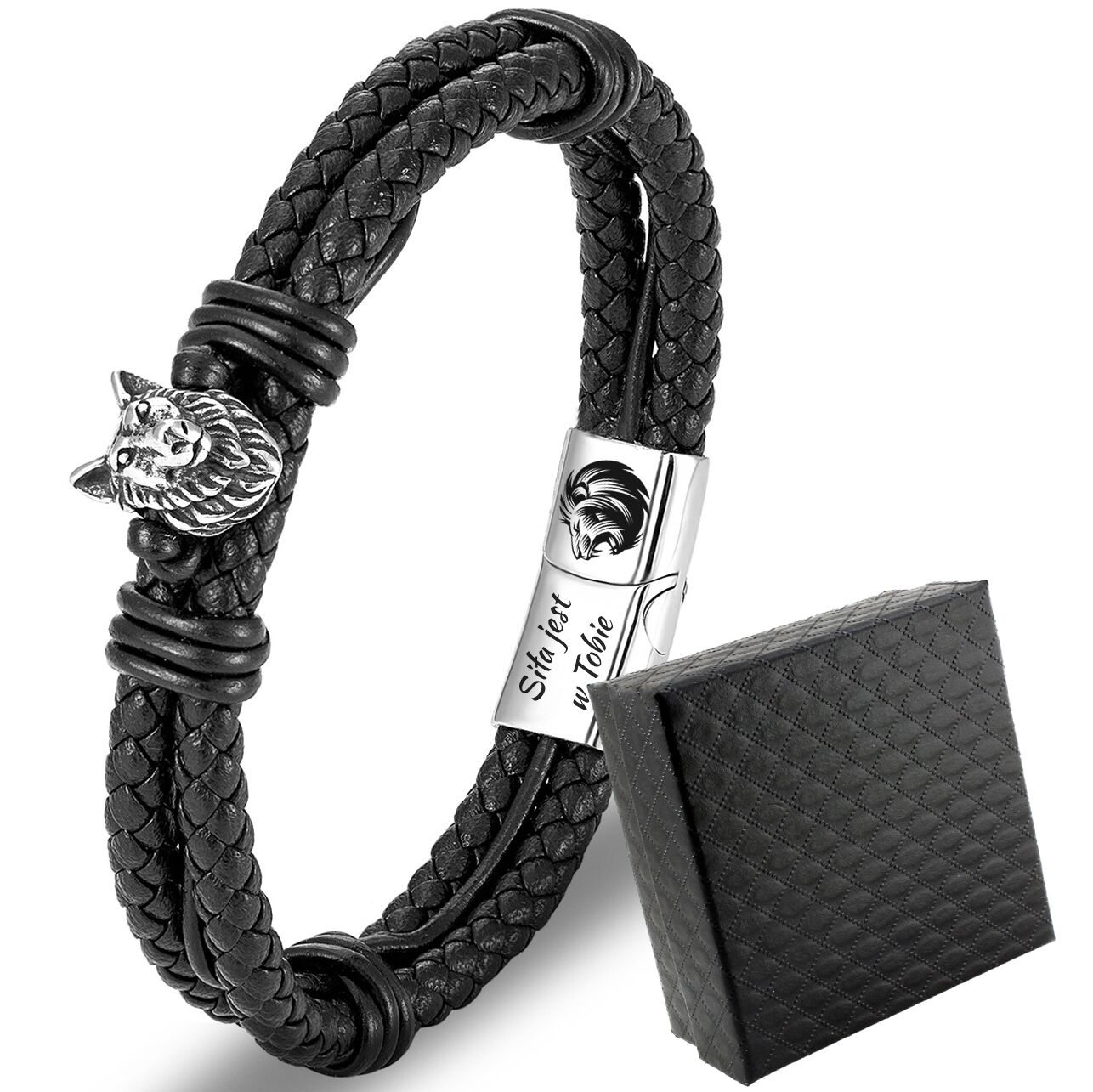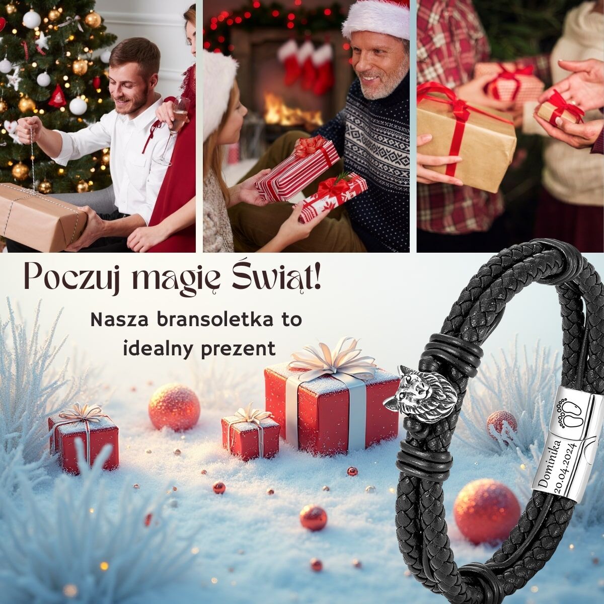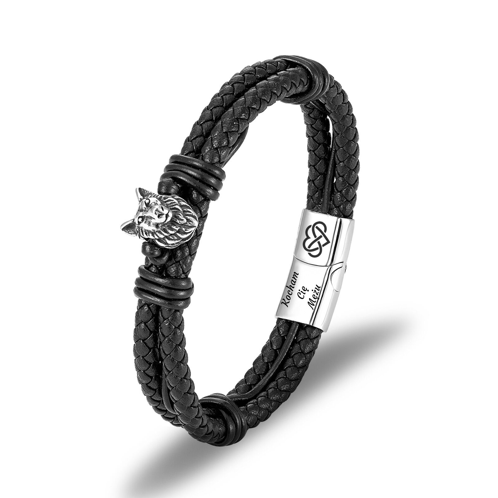 ELEGANCKA bransoletka skórzana WILK z grawerem