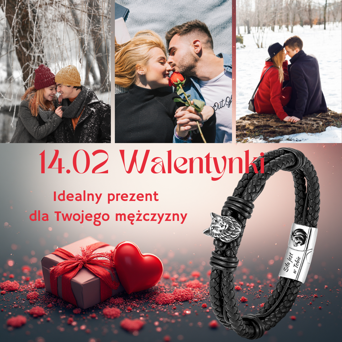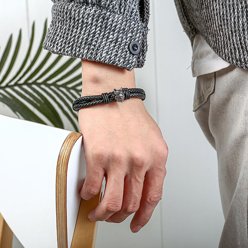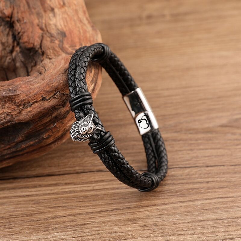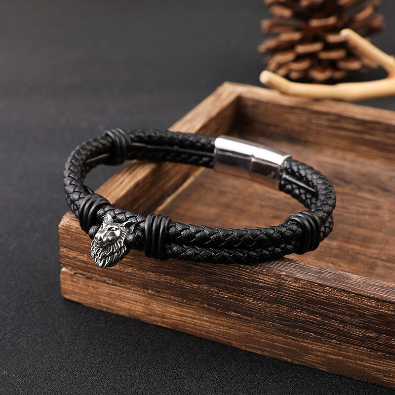ELEGANCKA bransoletka skórzana WILK z grawerem