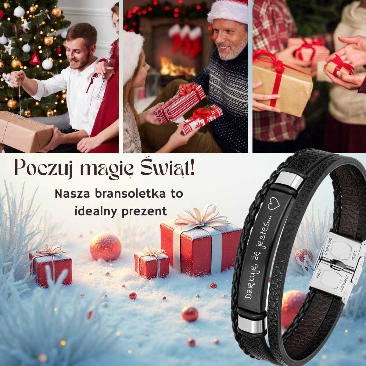 ELEGANCKA Męska bransoletka skórzana z grawerem