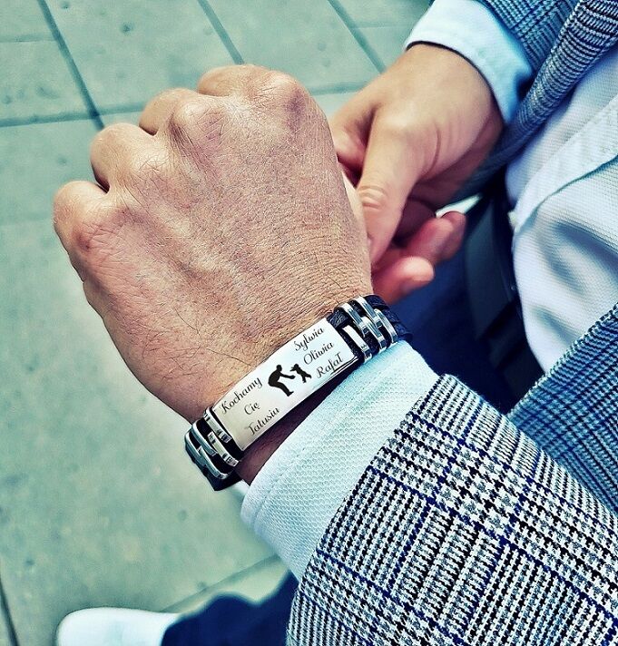 Męska bransoletka z grawerem SKÓRZANE PASKI