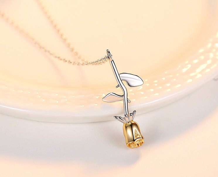 Efektowny naszyjnik, z motywem kwiatu róży. Naszyjnik wysadzany diamentowymi cyrkoniami. Ciekawym splot łańcuszków, sprawia, ze naszyjnik prezentuje się subtelnie i niepowtarzalnie na każdej szyi. Naszyjnik wykonane w całości ze srebra próby 925, pokryta prawdziwym srebrem.