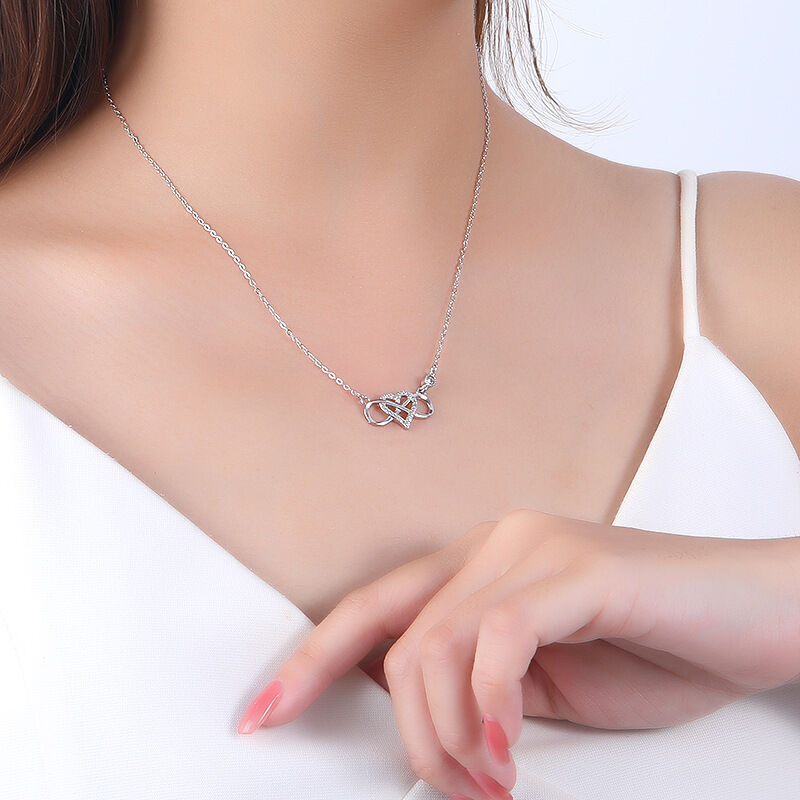 Efektowny naszyjnik wysadzany diamentowymi cyrkoniami. Ciekawym splot łańcuszków, sprawia, ze naszyjnik prezentuje się subtelnie i niepowtarzalnie na każdej szyi. Naszyjnik  wykonany w całości ze srebra próby 925.